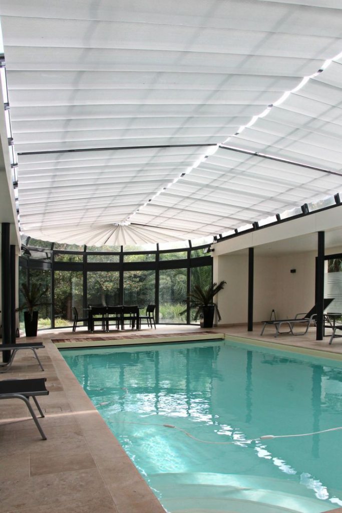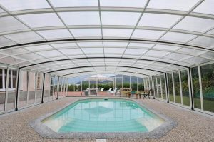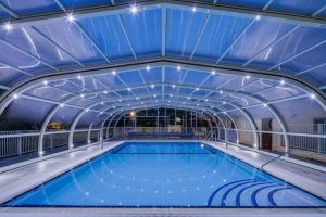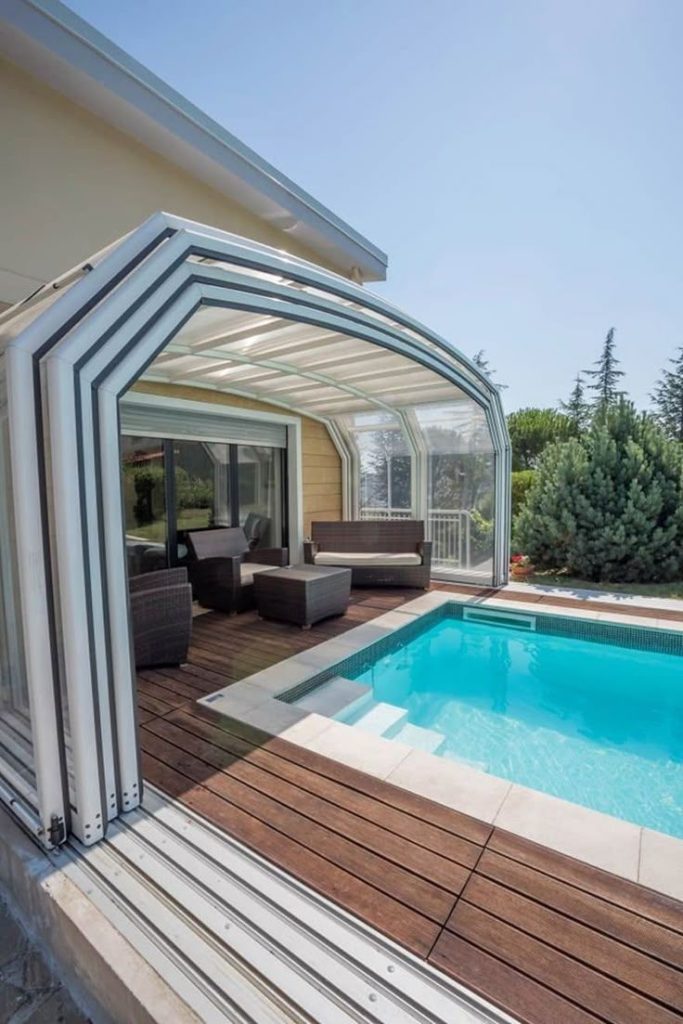 تعتبر مظلات اللكسان (البولي كربونيت) هي الخيار الأول للمسابح الراقية، وهي مادة بلاستيكية صلبة تشبه الزجاج لكنها غير قابلة للكسر.