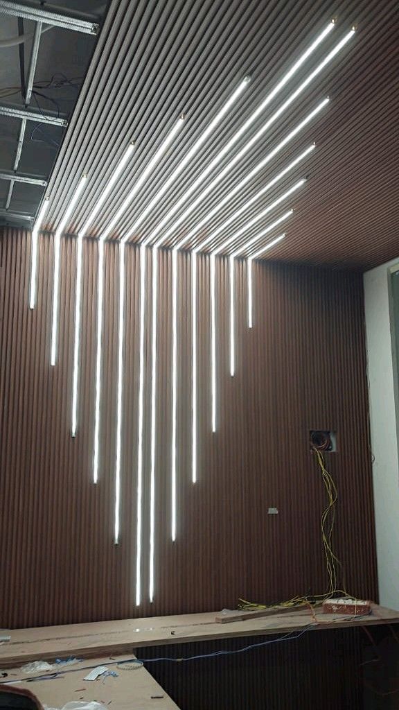 خلفيات الشاشات (TV Units): يُستخدم لتزيين جدران غرف المعيشة خلف شاشات التلفزيون مع إضافة إضاءة “LED” مخفية.